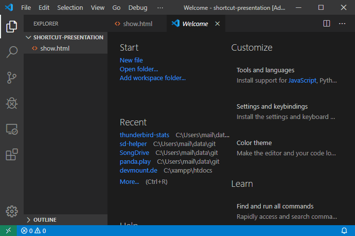 這將打開最近工作區(qū)的列表,并且是切換到另一個文件夾或項目的超快速方法。 請注意,如果在VS Code工作區(qū)中打開了一個終端,這會關(guān)閉當(dāng)前的終端會話。