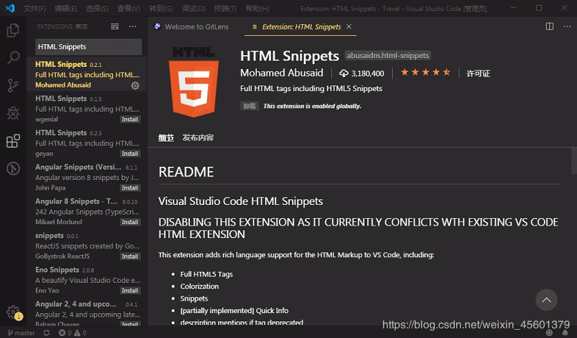 3.9 HTML Snippets(智能提示HTML標(biāo)簽,以及標(biāo)簽含義)