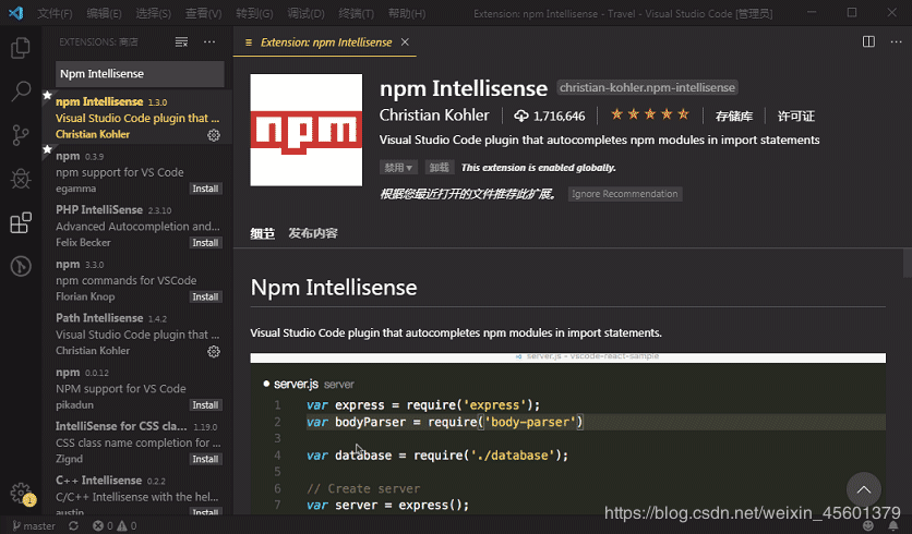 3.21 npm Intellisense(require 時(shí)的包提示)