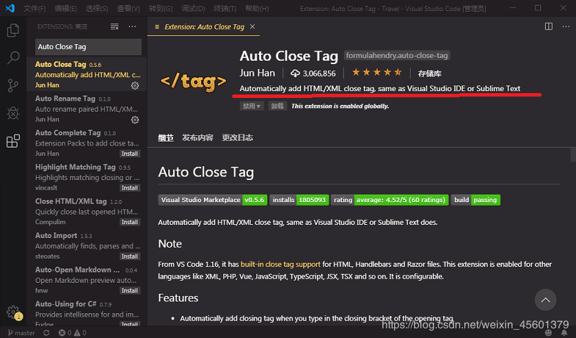 3.2 Auto Rename Tag (自動完成另一側(cè)標(biāo)簽的同步修改)