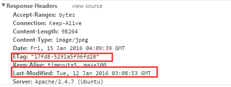 3)服務(wù)器再次收到資源請(qǐng)求時(shí),根據(jù)瀏覽器傳過(guò)來(lái)If-Modified-Since和資源在服務(wù)器上的最后修改時(shí)間判斷資源是否有變化,如果沒(méi)有變化則返回304 Not Modified,但是不會(huì)返回資源內(nèi)容;如果有變化,就正常返回資源內(nèi)容。當(dāng)服務(wù)器返回304 Not Modified的響應(yīng)時(shí),response header中不會(huì)再添加Last-Modified的header,因?yàn)榧热毁Y源沒(méi)有變化,那么Last-Modified也就不會(huì)改變,這是服務(wù)器返回304時(shí)的response header: