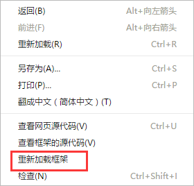 5)如果資源引用的頁(yè)面,被嵌入到了一個(gè)iframe里面,可以在iframe的區(qū)域右鍵單擊重新加載該頁(yè)面,以chrome為例:
