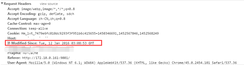 2)瀏覽器再次跟服務(wù)器請(qǐng)求這個(gè)資源時(shí),在request的header上加上If-Modified-Since的header,這個(gè)header的值就是上一次請(qǐng)求時(shí)返回的Last-Modified的值: