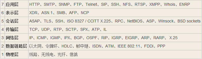 下面的圖表試圖顯示不同的TCP/IP和其他的協(xié)議在最初OSI(Open System Interconnect)模型中的位置: