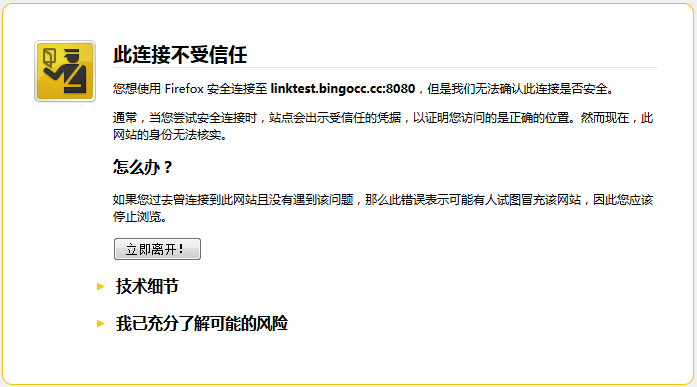 在HTTPS握手的第四步中,如果站點(diǎn)的證書是不受信任的,會顯示出現(xiàn)下面確認(rèn)界面,確認(rèn)了網(wǎng)站的真實(shí)性。另外第六和八步,使用客戶端私鑰加密解密,保證了數(shù)據(jù)傳輸?shù)陌踩?/p>