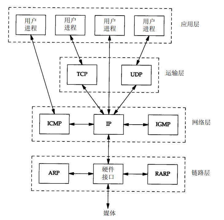 TCP/IP協(xié)議棧主要分為四層:應(yīng)用層、傳輸層、網(wǎng)絡(luò)層、數(shù)據(jù)鏈路層,每層都有相應(yīng)的協(xié)議,如下圖