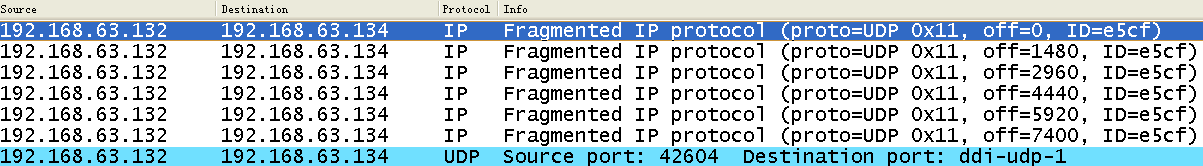 可以看到,但數(shù)據(jù)提交到網(wǎng)絡(luò)層的時(shí)候,由于數(shù)據(jù)超過了最大傳輸單元,就分片了。分成多個(gè)包通過IP協(xié)議發(fā)送個(gè)對(duì)方。每個(gè)數(shù)據(jù)包最大的字節(jié)為MTU - IP頭 = 1500 - 20 = 1480。