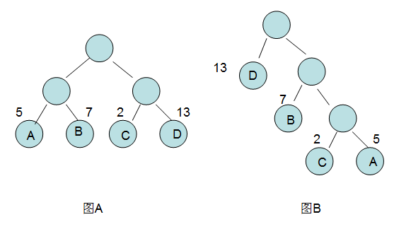 我們對比一下,圖B的WPL最短的,地球人已不能阻止WPL還能比“圖B”的小,所以,“圖B"就是一顆赫夫曼樹,那么大家肯定