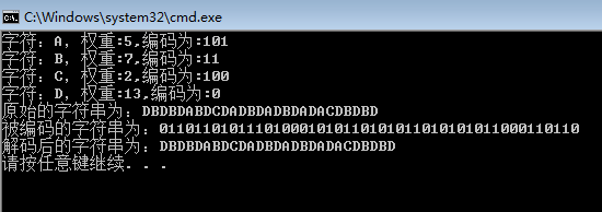 Console.WriteLine("字符:{0},權(quán)重:{1},編碼為:{2}", alphabet[i], huffman[i].weight, huffmanCode[i]);