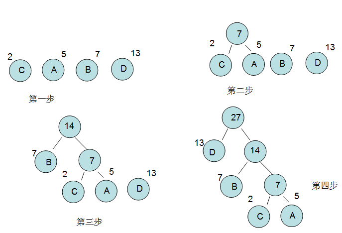 要問,如何構(gòu)建一顆赫夫曼樹,還是上圖說話。