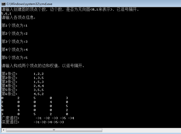 Console.WriteLine("請(qǐng)輸入創(chuàng)建圖的頂點(diǎn)個(gè)數(shù),邊個(gè)數(shù),是否為無(wú)向圖(0,1來(lái)表示),已逗號(hào)隔開(kāi)。");