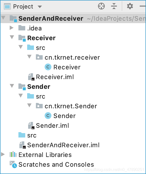 前提:創(chuàng)建一個項(xiàng)目,在項(xiàng)目中創(chuàng)建兩個模塊(model),一個模塊用來放發(fā)送方相關(guān)代碼,一個模塊用來放接收方相關(guān)代碼。