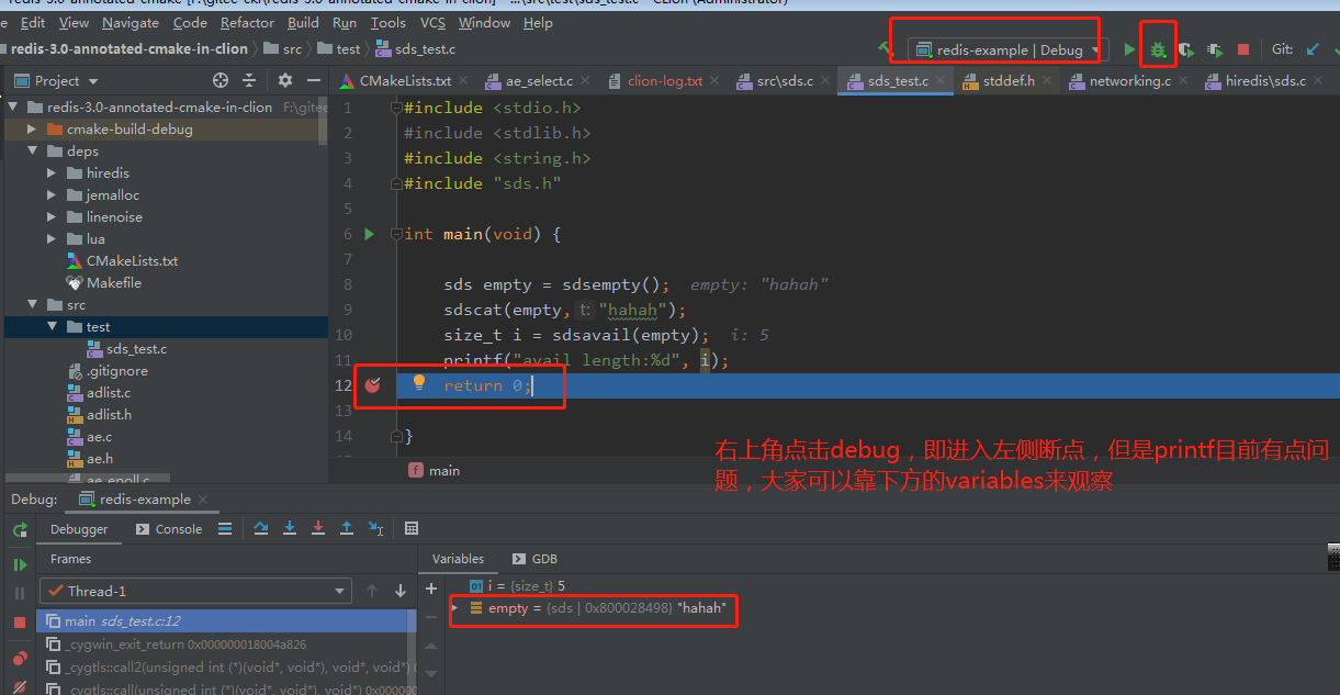 所以,我們就希望,能夠把redis的源碼拉下來看,看的過程,你可以自己在源文件里加注釋;同時(shí),也要支持debug,來觀察程序的運(yùn)行過程,來看看,一個(gè)請(qǐng)求進(jìn)來,是怎樣編解碼,怎么樣被處理的,怎么樣返回結(jié)果的,網(wǎng)絡(luò)通信怎么做的,這之類的。