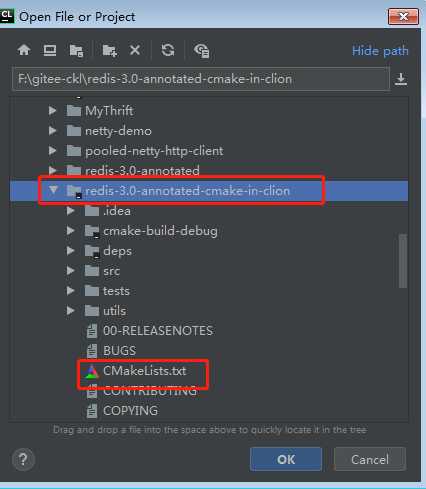 大家把代碼克隆到本地后,然后在clion中,打開工程即可。