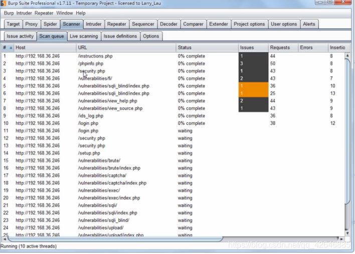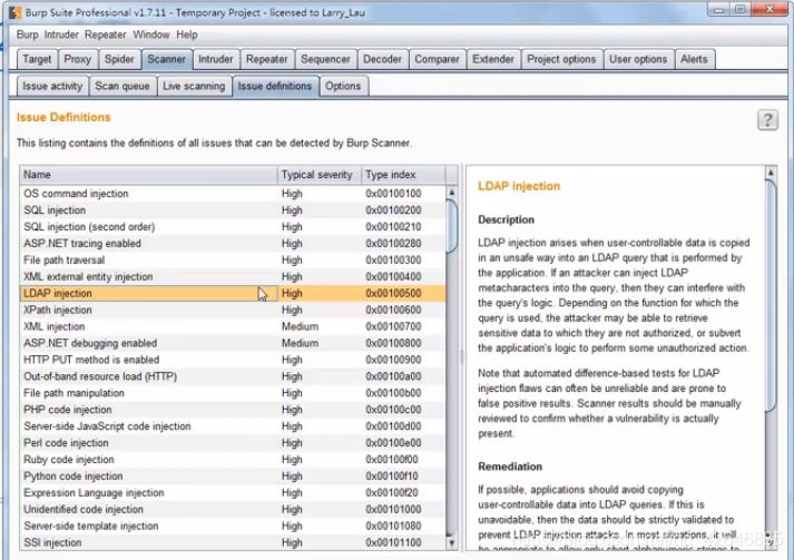再Scanner下的Issue defintion可以定義掃什么樣的漏洞。