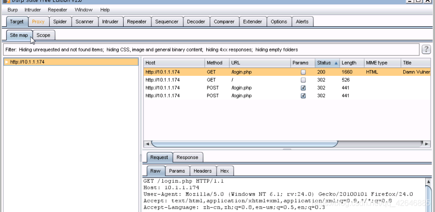 點擊Login,頁面卡住了,下面burpsuite閃框提示有新的數(shù)據(jù)傳入,打開看抓包信息。