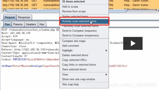 雙擊para,會選中有參數(shù)的記錄。右鍵點擊Actively scan selected items選項。