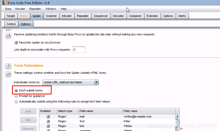 如果不填寫任何表單,可在Spide——options,勾選如下設(shè)置。