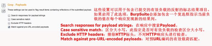 選項6:Grep – Payloads 這些設(shè)置可以用于包含已提交的有效負(fù)載的反射的標(biāo)志結(jié)果項目。如果啟用了此選項,BurpSuite會添加包含一個復(fù)選框指示當(dāng)前負(fù)載的值在每個響應(yīng)發(fā)現(xiàn)新的結(jié)果列。