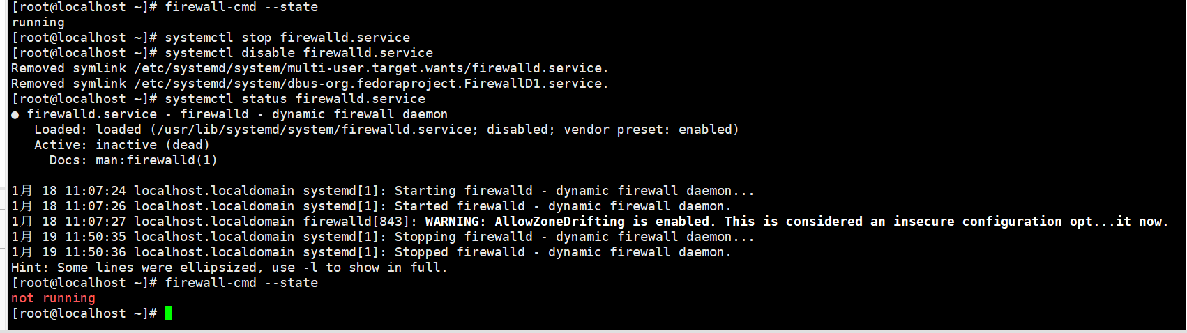 (1)查看防火墻狀態(tài):firewall-cmd --state