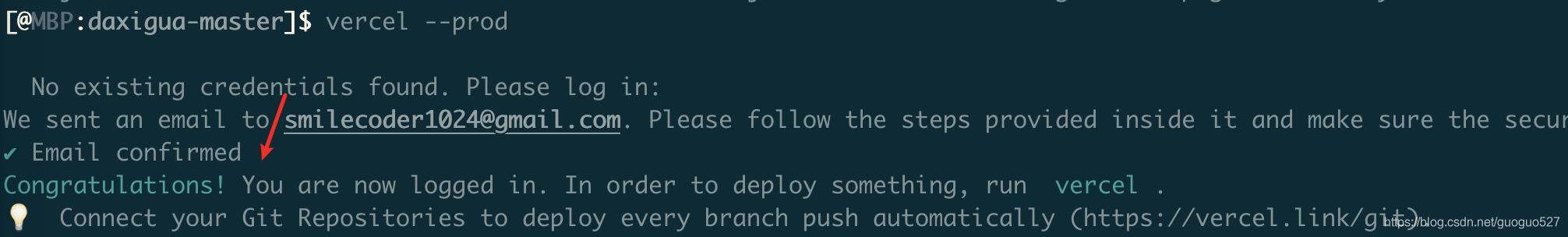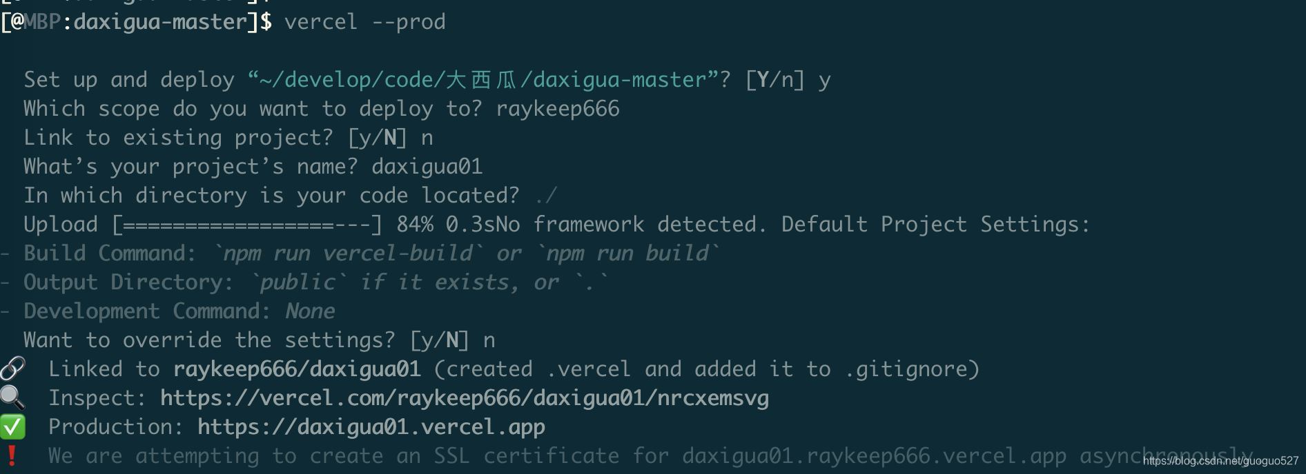 驗(yàn)證完之后可以繼續(xù)執(zhí)行 vercel --prod