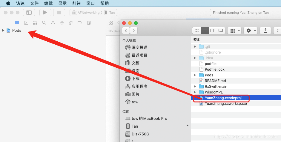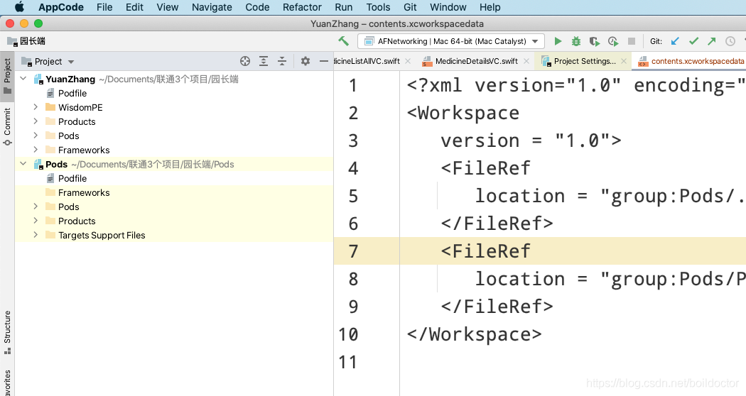 再次打開 appcode,把workspace或者整個(gè)文件夾拖進(jìn)去。再打開就會(huì)找到項(xiàng)目了,如下圖: