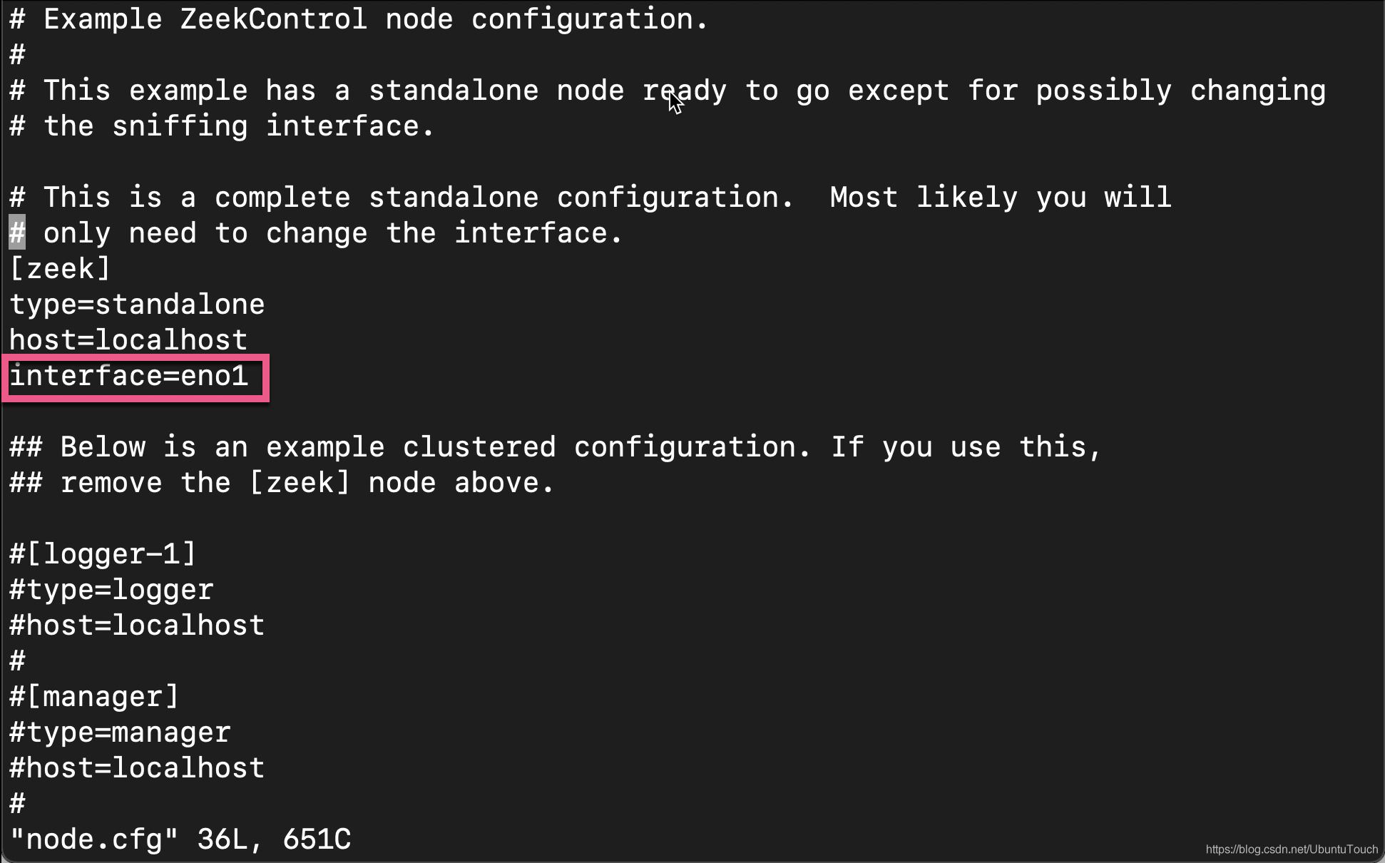 這個文件包含對 zeek 的節(jié)點配置。我們需要配置我們的 interface: