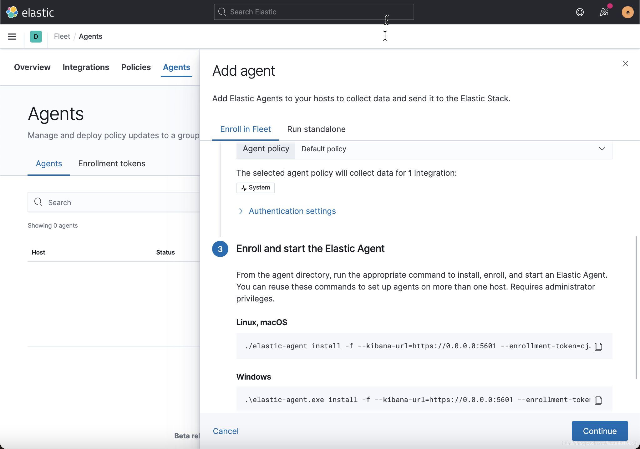 現(xiàn)在,我們準(zhǔn)備安 Elastic agent。 從 Fleet Dashboard 復(fù)制安裝命令,并在該代理所在的 Windows 主機上使用 PowerShell 運行它。由于 Elastic Stack 是運行于另外一個機器上的,我們需要對它做一些配置。我們可以參考文章 “Elastic:Elastic Security 入門”。這里就不再詳述了。