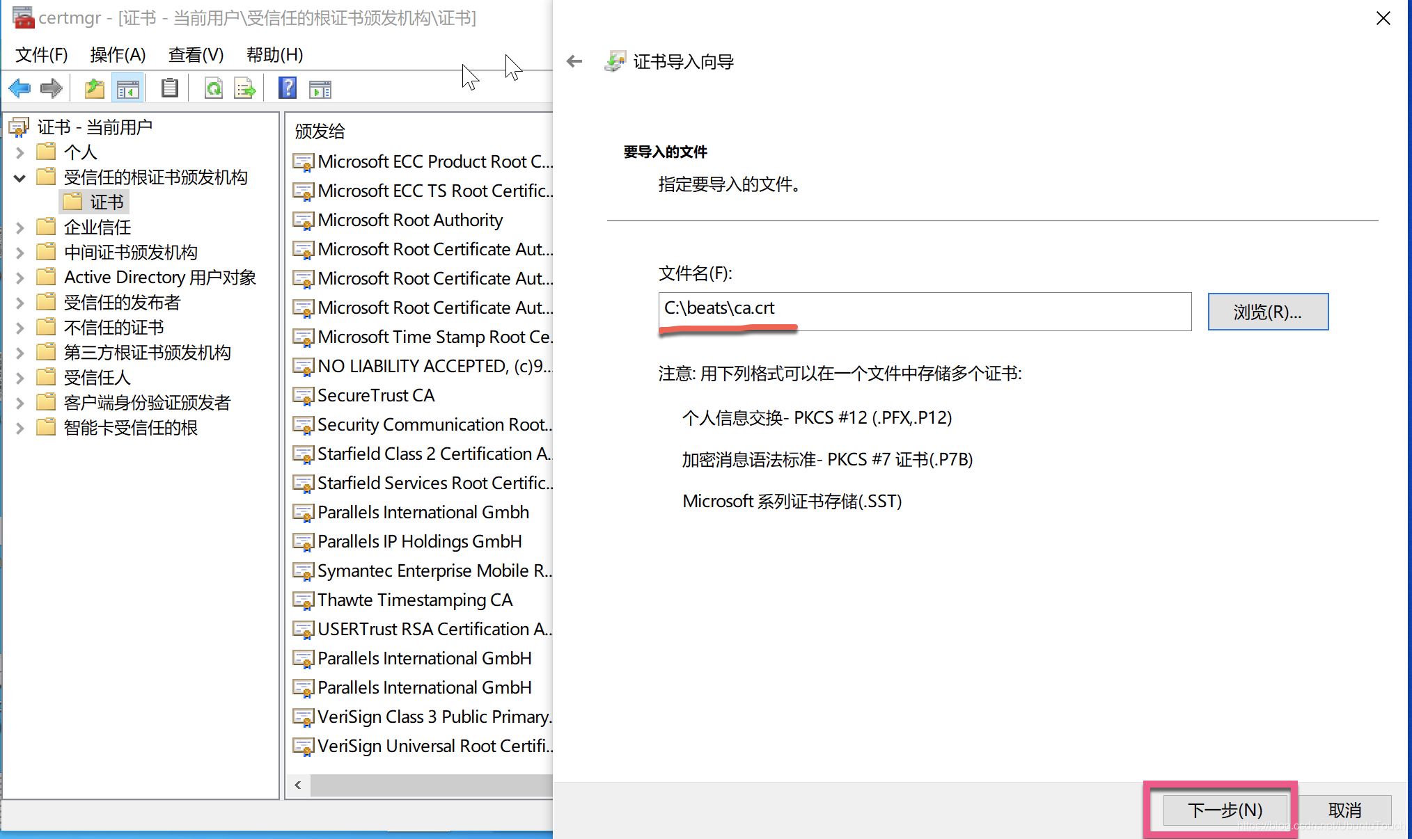 然后簡單地按照向?qū)Р僮鳎⑦x擇我們之前創(chuàng)建的 ca.crt。