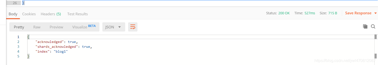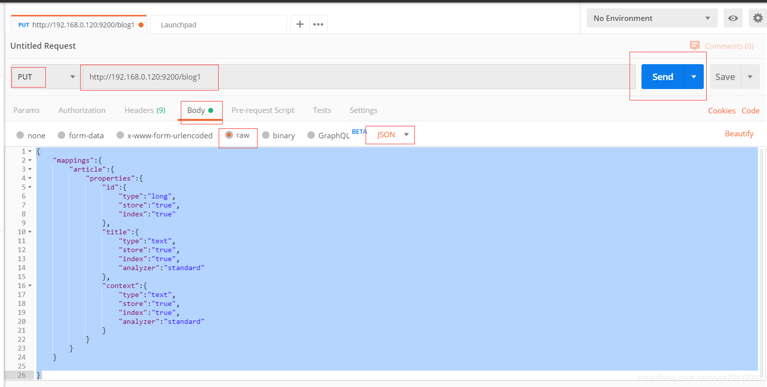 添加索引blog1(因為ElasticSearch是restful請求所以我們用postman發(fā)送http請求給ElasticSearch)