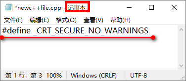(2)在VS2019的安裝路徑下找到“newc++file.cpp”這個(gè)文件,用記事本的方式打開,并把這行代碼復(fù)制粘貼上去,然后保存即可,這樣以后每次新建.c源文件的時(shí)候這行代碼就會(huì)自動(dòng)出現(xiàn)在第一行。