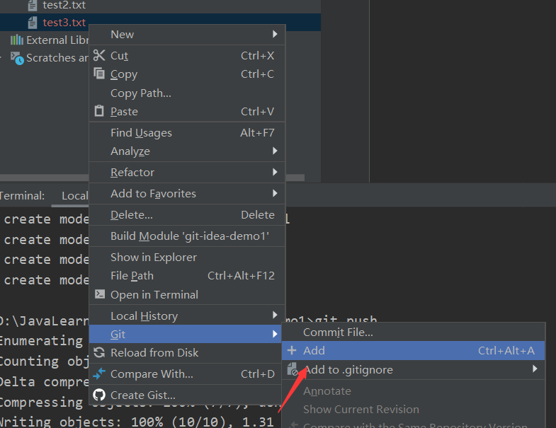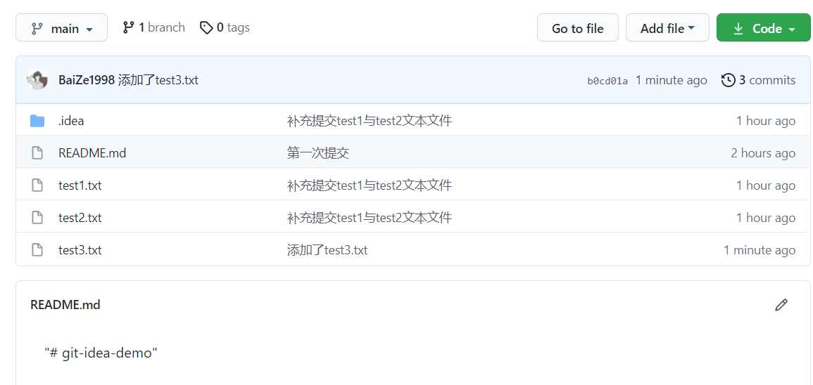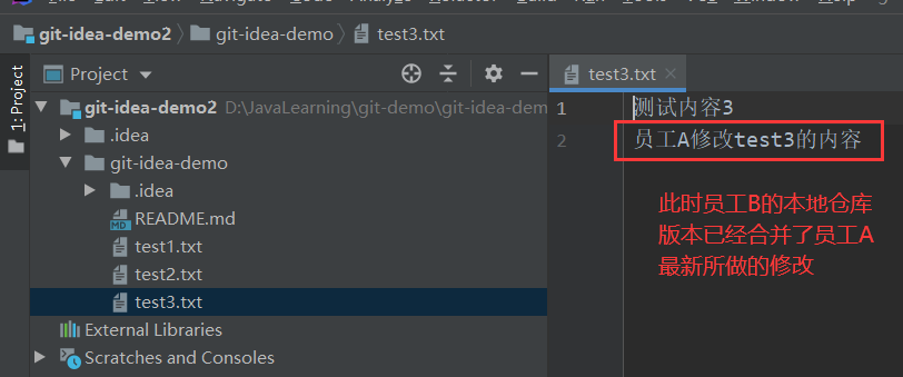 - 修改項(xiàng)目?jī)?nèi)容(添加了test3.txt)