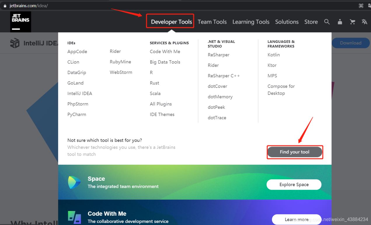 1.我們可以選擇”Developer Tools”開發(fā)者工具頁簽,選擇其中的”Find your tool”按鈕