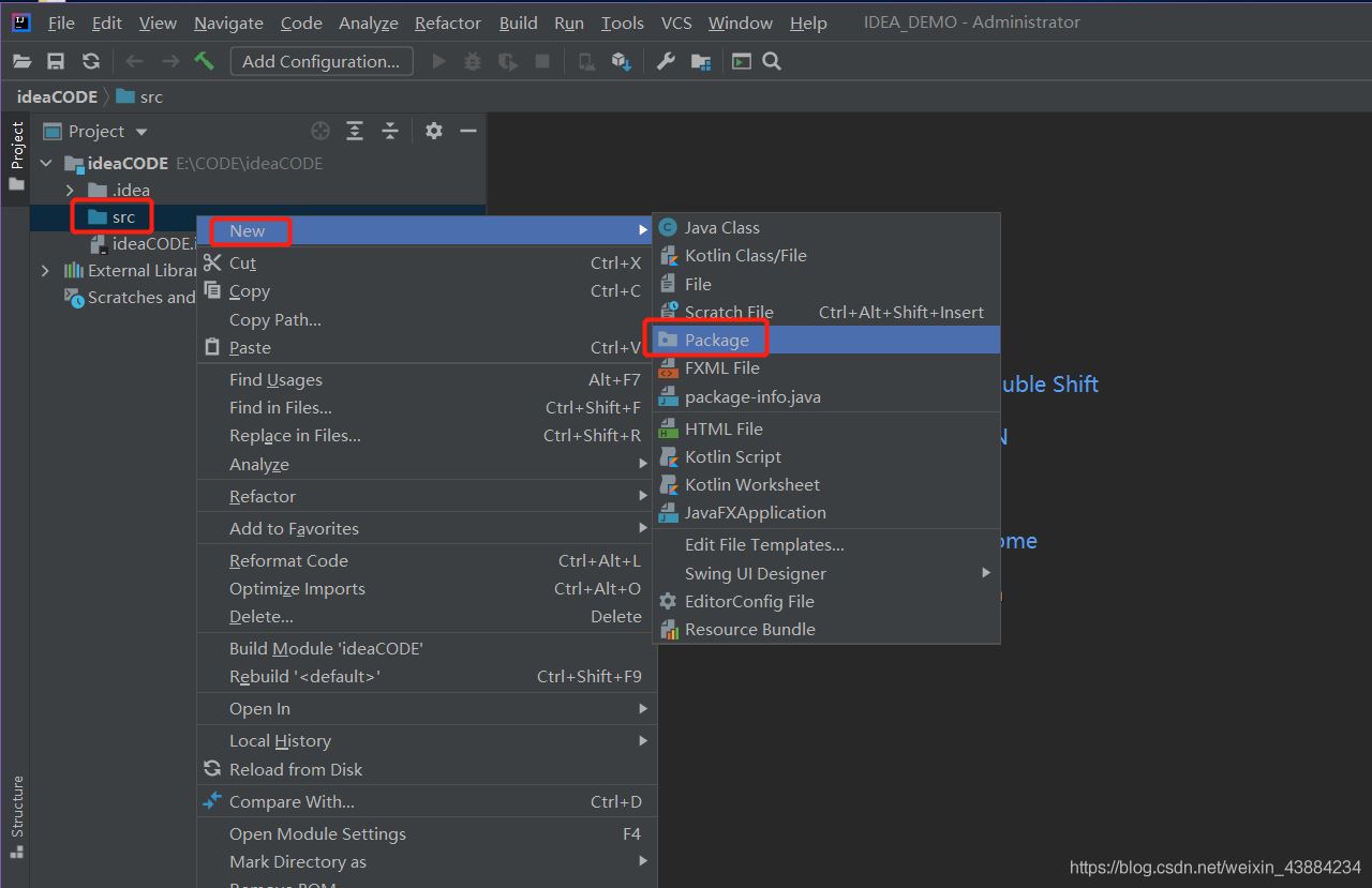 6.點擊側(cè)邊欄顯示剛剛創(chuàng)建的項目后,選擇”src”,右鍵”New”新建一個”Package”包