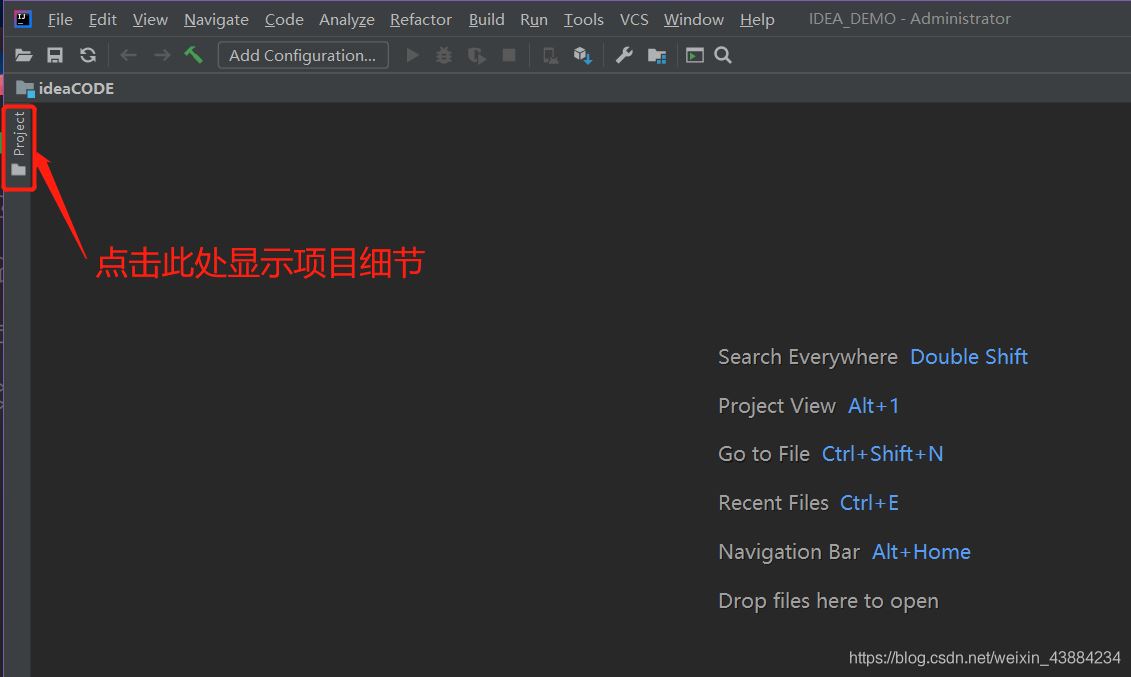 5.點擊側(cè)邊欄”Project”可以顯示項目細節(jié),類似eclipse中的”Package Explorer”