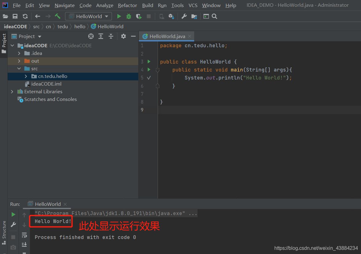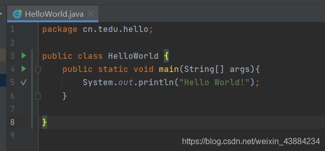 或者也可以選擇點擊main()方法右邊行號上的綠色運行小三角也可以運行該程序