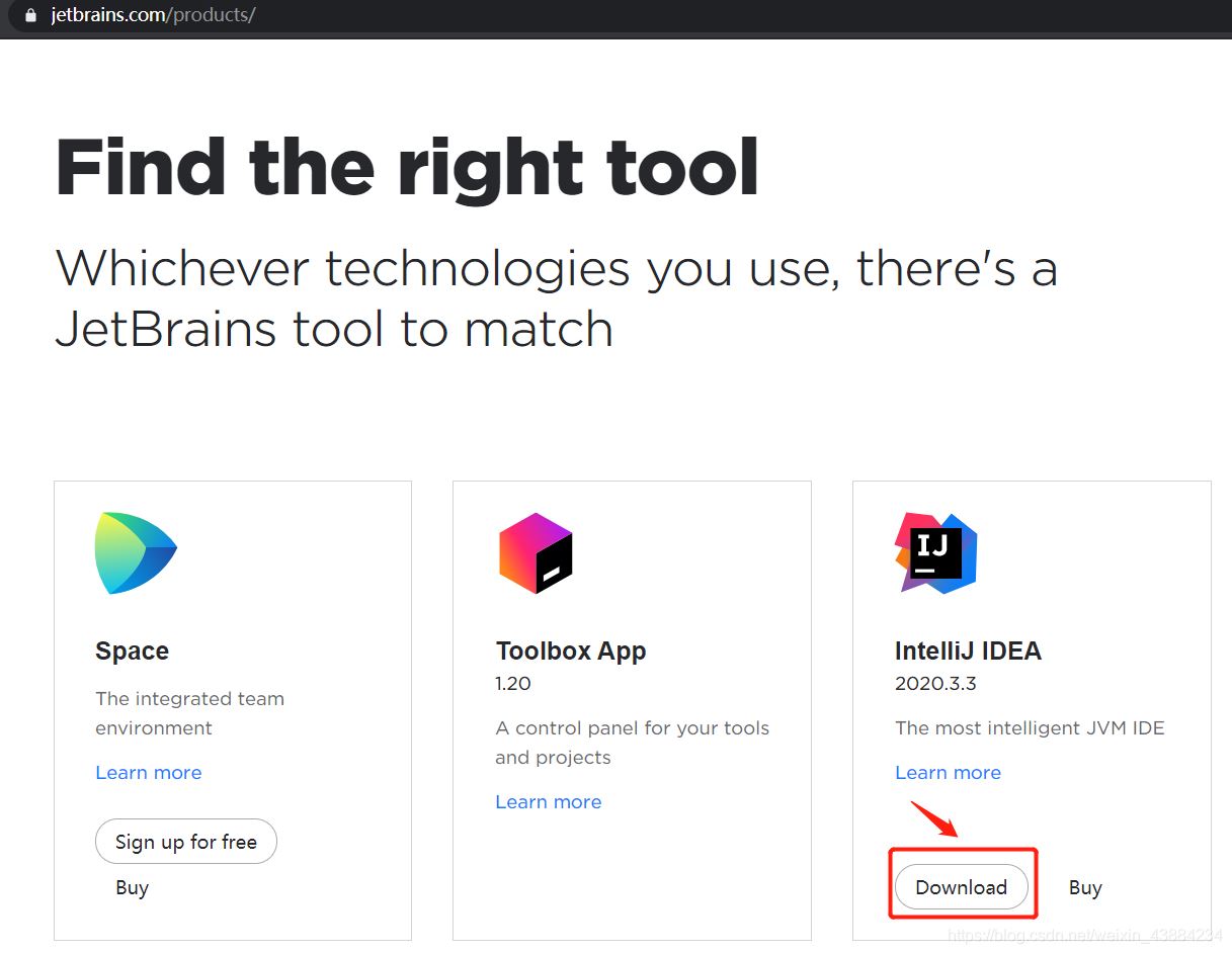 2.在彈出的頁面中選擇”IntelliJ IDEA”中的”Download”