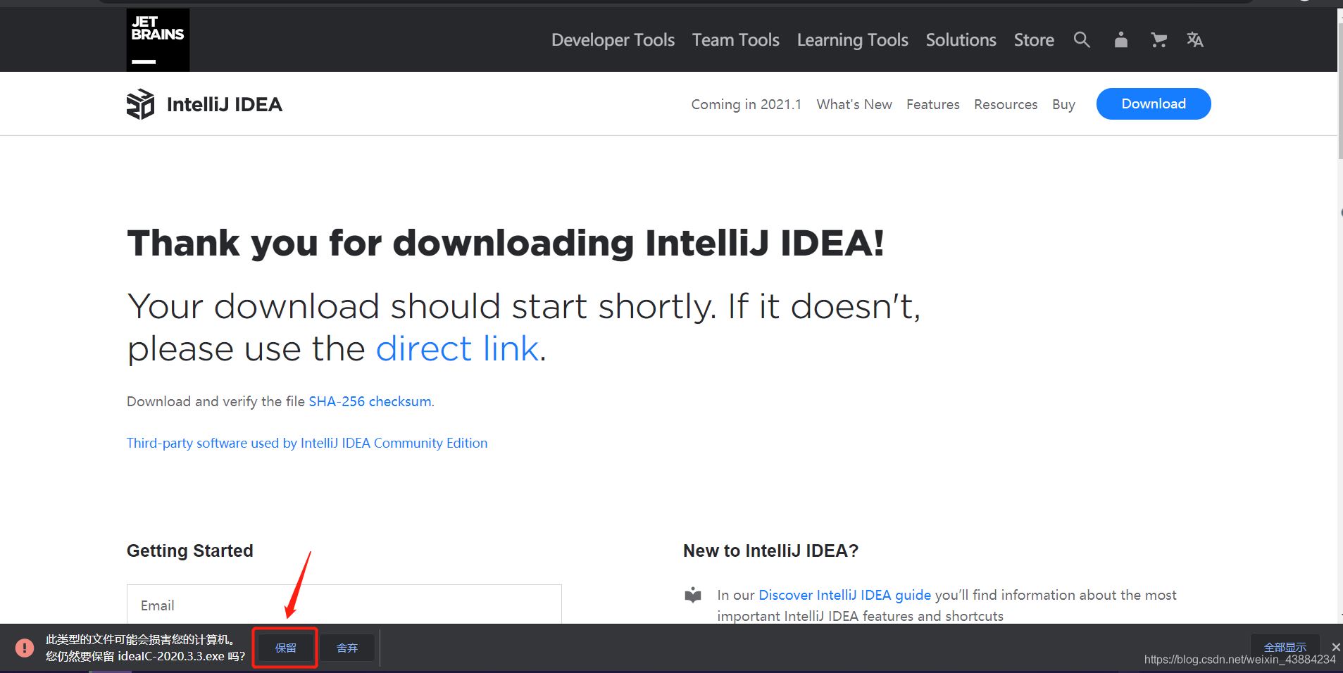 如果下載時出現(xiàn)了”此類型文件可能會損壞您的計算機”,選擇”保留”,等待下載結(jié)束即可.