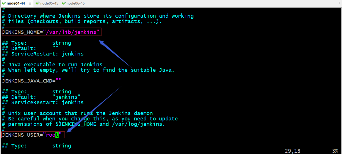 提示:JENKINS_HOME用來指定jenkins的數(shù)據(jù)目錄;默認(rèn)是在/var/lib/jenkins目錄;JENKINS_USER是用來指定jenkins的啟動用戶,默認(rèn)是jenkins;如果不更改啟動用戶,使用默認(rèn)用戶,后續(xù)我們拖代碼,編譯,測試都是基于這個(gè)用戶的權(quán)限去做,所以后續(xù)要注意其他服務(wù)器上對這個(gè)用戶的權(quán)限;通常jenkins平臺都不會對外,都是在內(nèi)網(wǎng)中使用,所以更改成root也是可以的,如果你不想麻煩,建議修改成root;后續(xù)其他配置幾乎不用更改,保存上面的配置,我們就可以啟動jenkins了;