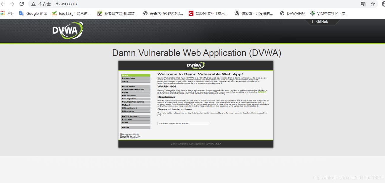 DVWA(Damn Vulnerable Web Application)是一個(gè)用來(lái)進(jìn)行安全脆弱性鑒定的PHP/MySQL Web應(yīng)用,旨在為安全專業(yè)人員測(cè)試自己的專業(yè)技能和工具提供合法的環(huán)境,幫助web開(kāi)發(fā)者更好的理解web應(yīng)用安全防范的過(guò)程。