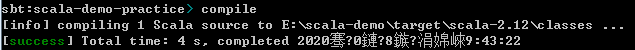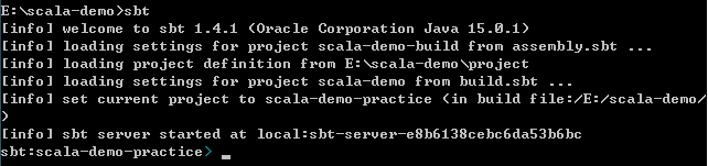 進入 cmd,路徑為 scala-demo 所在路徑,輸入 sbt 構(gòu)建項目,首次使用 sbt 會下載一些外部依賴,可能會很慢