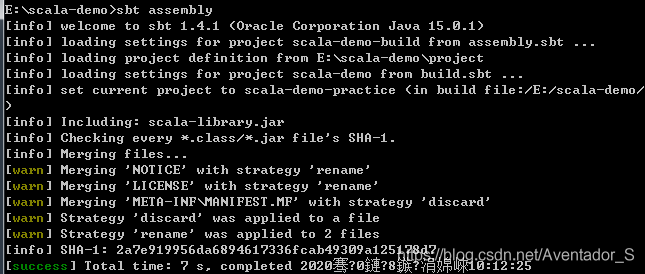 輸入 sbt assembly 構(gòu)建整個項目,并且把所有依賴放到新的 jar 包里,對整個項目的運行來說很方便