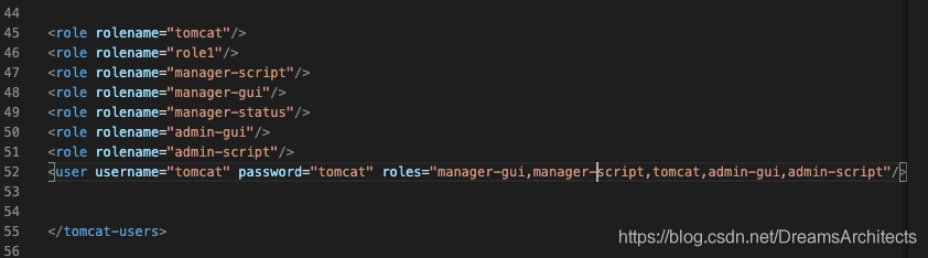 但是,后續(xù)Jenkins部署項(xiàng)目到Tomcat服務(wù)器,需要用到Tomcat的用戶,所以修改tomcat以下配置, 添加用戶及權(quán)限