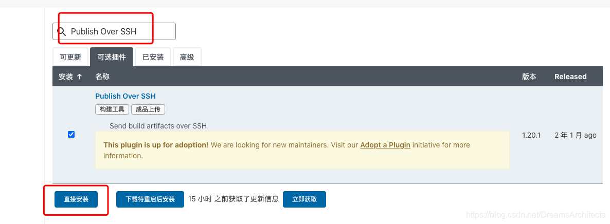 安裝Pipeline插件 Manage Jenkins->Manage Plugins->可選插件