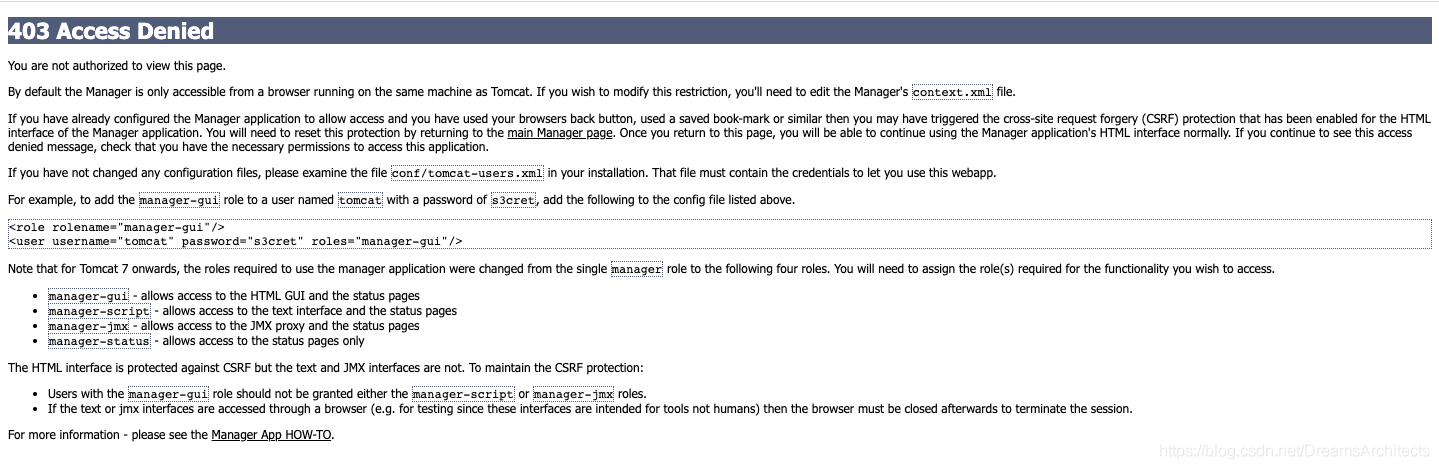 默認(rèn)情況下Tomcat是沒有配置用戶角色權(quán)限的