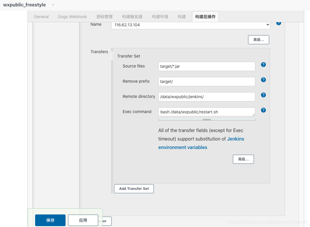 增加構(gòu)建后操作步驟,然后配置ssh信息,編寫腳本,然后發(fā)包后執(zhí)行腳本,停止進(jìn)程,在啟動(dòng)進(jìn)程。