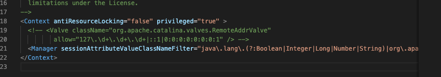 vi /opt/tomcat/webapps/manager/META-INF/context.xml