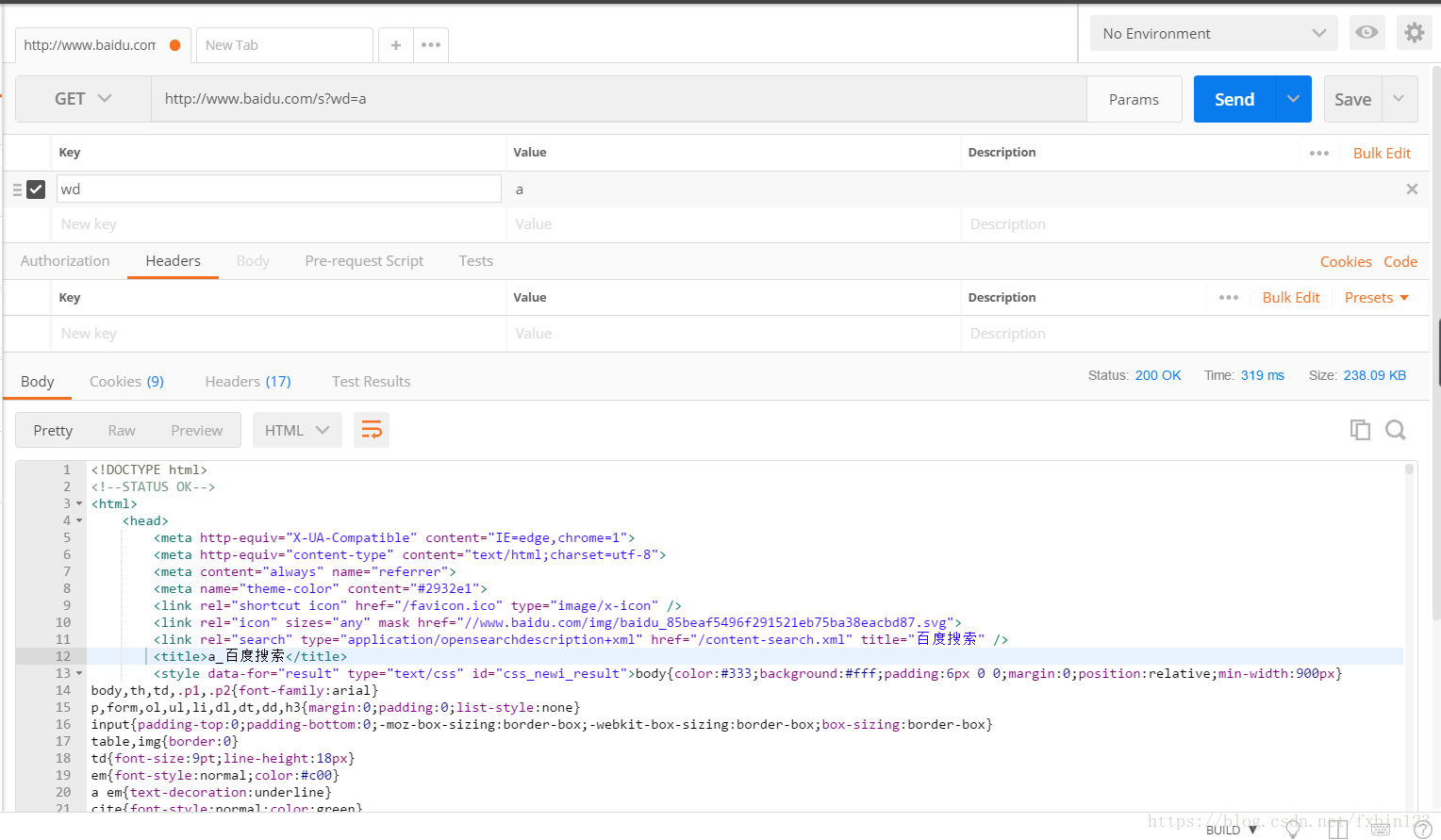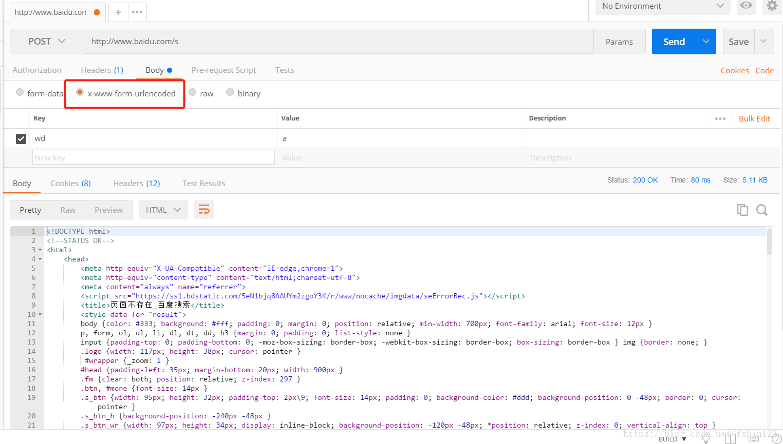 響應(yīng)體示例: 響應(yīng)的格式可以有多種,我這里由于請(qǐng)求的是 百度,so, 響應(yīng)的是 html ,
