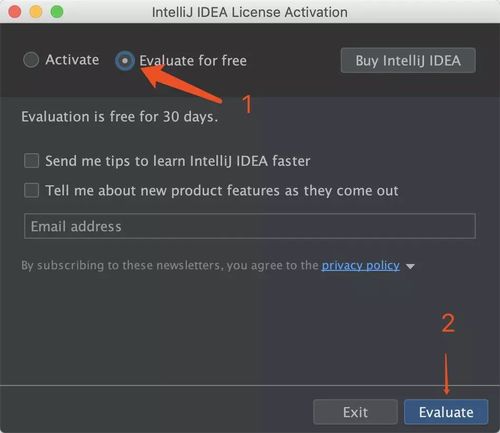 如果你之前已經(jīng)使用有效期激活過可跳過此步驟,如果你是剛下載的Idea,則需要點擊激活窗口的“Evaluate for free”免費試用,然后再創(chuàng)建一個空項目,這樣就可以進(jìn)入到Idea的工作頁面