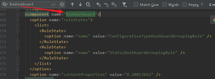 1. 找到.idea文件下的workspace.xml,通過Ctrl+F搜索RunDashboard